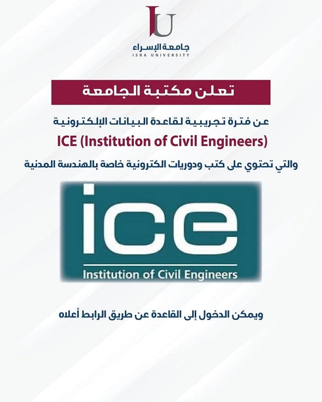 فترة تجريبية لقاعدة البيانات الإلكترونية ICE (Institution of Civil Engineers)