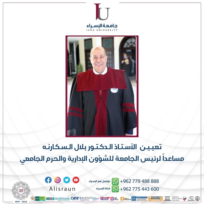 الأستاذ الدكتور بلال السكارنه مساعداً لرئيس الجامعة للشؤون الإدارية