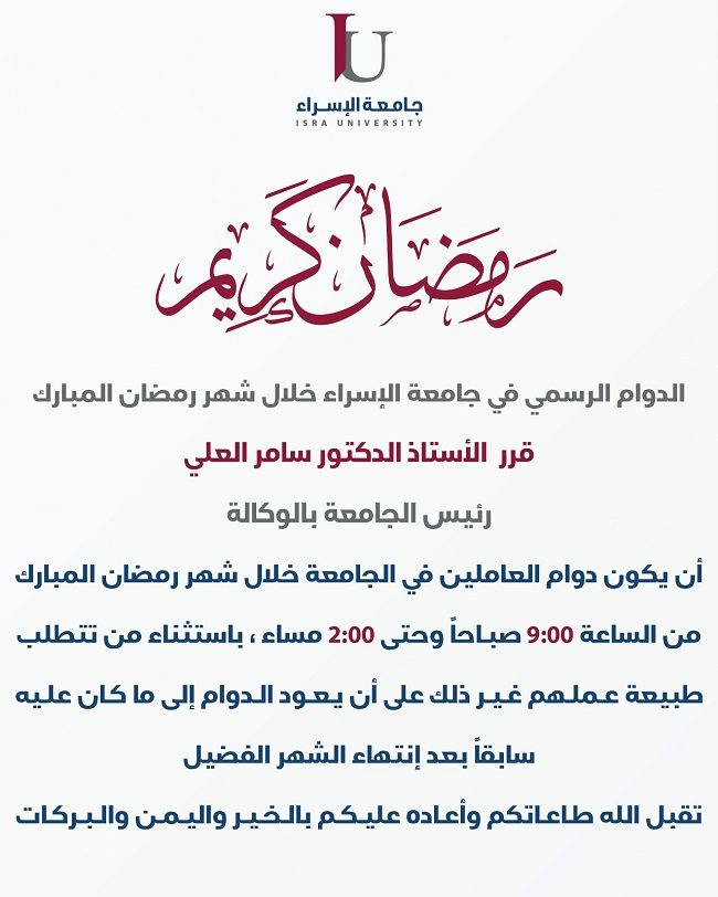 الدوام الرسمي خلال شهر رمضان المبارك