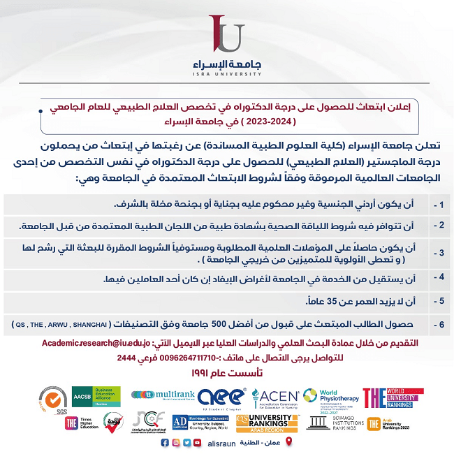 إعلان ابتعاث للحصول على درجة الدكتوراه في تخصص العلاج الطبيعي