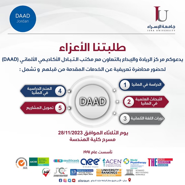 يدعوكم مر كز الريادة والإبداع بالتعاون مع مكتب التبادل الأكاديمي الألماني DAAD)) لحضور محاضرة تعريفية