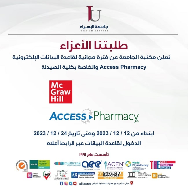 الدخول لقاعدة البيانات عبر الرابط الآتي: https://accesspharmacy.mhmedical.com/ – Username: alisrau – Password: Medicine2023