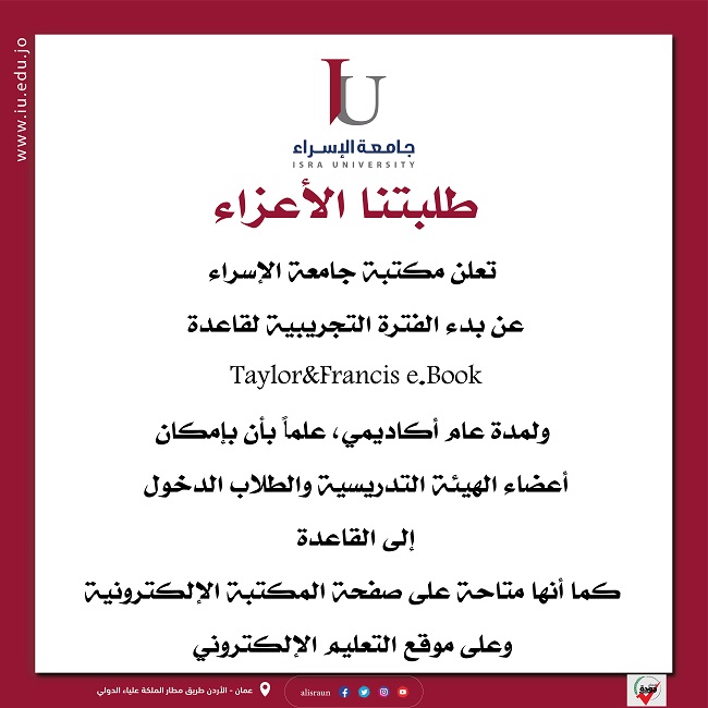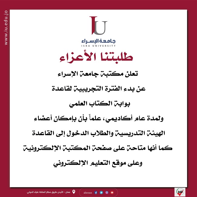 كلية الهندسة تدعو الطلبة لحضور إطلاق Student ChapterLunching Day(AEEIU) وذلك يوم الاحد الموافق 6/11/2022 في تمام الساعة (11) صباحاًِ