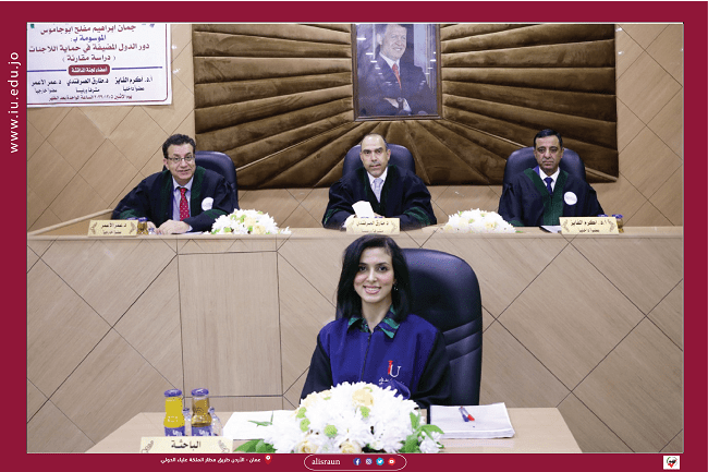 نوقشـت رسـالة ماجسـتير لطالبة جمان إبراهيم أبو جاموس والموسومة بعنوان : ” دور الدول المضيفة في حماية اللاجئات – دراسة...