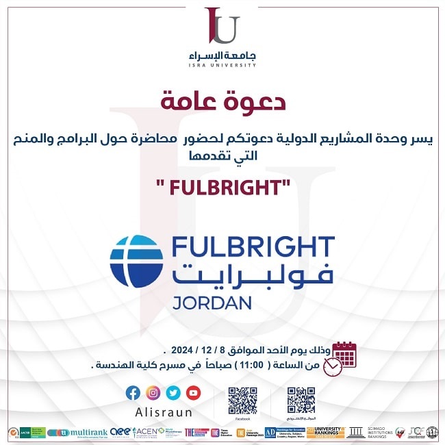 جامعة الإسراء تنظم محاضرة تعريفية حول منح فولبرايت الأمريكية