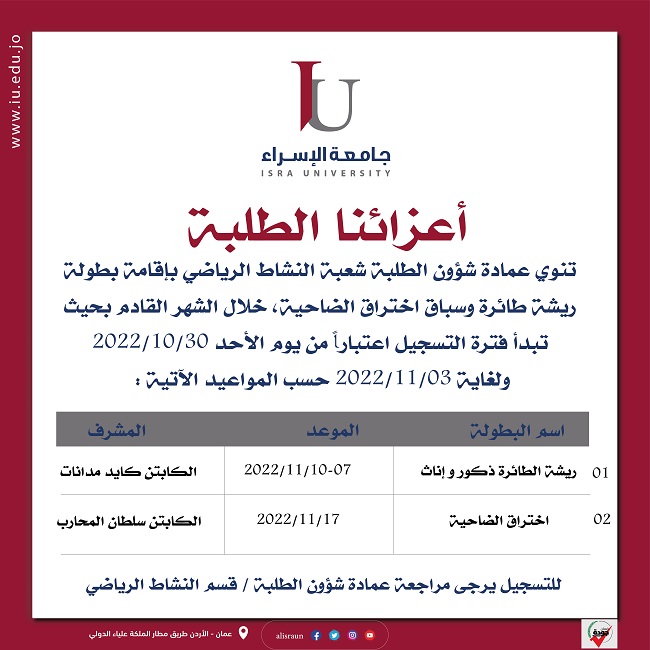 طلبتنا الأعزاء للتسجيل عبر الرابط الآتي : https://forms.gle/nhD7APx2zRCsnxA19