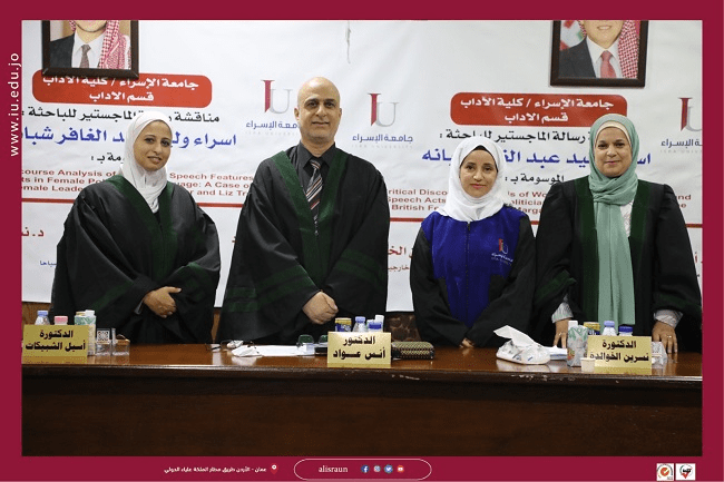 ناقشت الطالبة إسراء وليد شبانه من كلية الآداب بتخصص اللغة الإنجليزية وآدابها، رسالة ماجستير الخاصة بها والموسومة ب”...