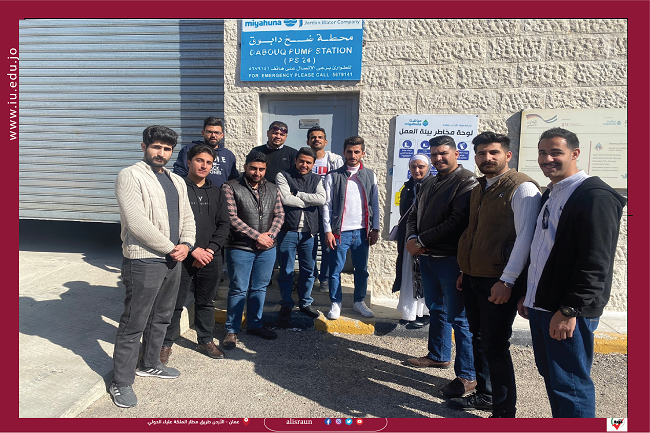 نظمت كلية الهندسة رحلة علمية لطلبة قسم الهندسة المدنية إلى خزان دابوق و بوستر دابوق. برفقة المهندسة دعاء المجالي.