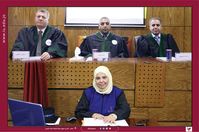 وتكونت لجنة المناقشة من الدكتور خالد النجار ( رئيساً مشرفاً ) الدكتور بسام السعديين (مناقشاً داخلياً ) ، والأستاذ الدكتور صبري الشبول (مناقشاً خارجياً) من الجامعة الهاشمية.