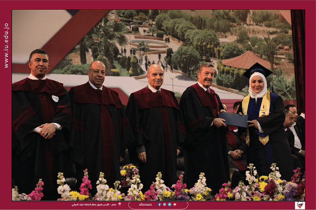 وفي الختام سلم راعي الحفل السيد عدنان بهجت التلهوني والأستاذ الدكتور أحمد نصيرات الشهادات للطلبة الخريجين والدروع للطلبة الأوائل.