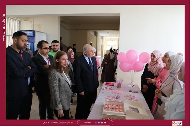 كلية الصيدلة في جامعة الإسراء تنظم يوماً توعوياً حول سرطان الثدي بعنوان “Think Pink”.