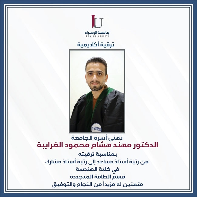 ترقية الدكتور مهند هشام الغرايبة إلى رتبة أستاذ مشارك
