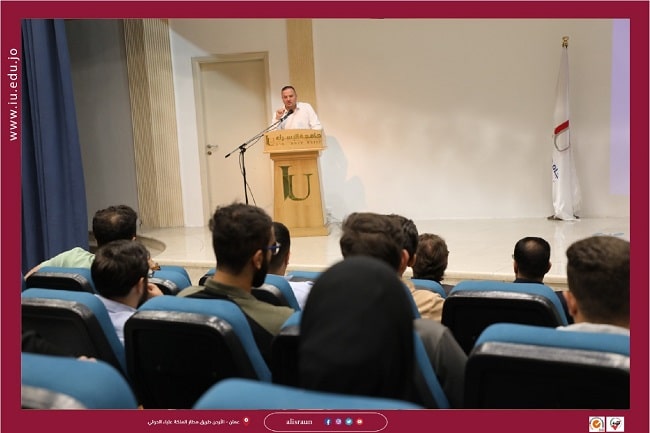 The Faculty of Information Technology organized a symposium on cybersecurity entitled “Be an Expert, Be Protected” in cooperation with the Cyber Shield Academy of the Jordanian Center for Design and Technology, in the presence of Dr. Zaid Al-Halhouli (Dean of the Faculty of Information Technology), faculty members, and a group of students.