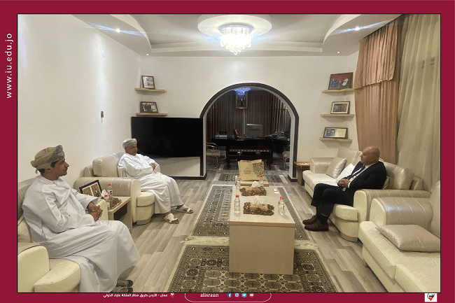 ومن جهته، شكر الدكتور محمد حامد رئيس الجامعة سعادة الشيخ فيصل الحوسني على حسن الاستقبال، مؤكّداً على العلاقات الثنائية الدبلوماسية التي تتميّز بين سلطنة عُمان والمملكة الأردنية الهاشمية ، موضّحاً بأن الجامعة تسعى دائماً إلى عقد اتفاقيات تعاون وشراكات مع الجامعات في الدول العربية بشكل عام وفي سلطنة عُمان الشقيقة بشكل خاص ، وتسعى دائماً لتقديم كافة التسهيلات اللازمة والضرورية للطلبة من الدول العربية الشقيقة.