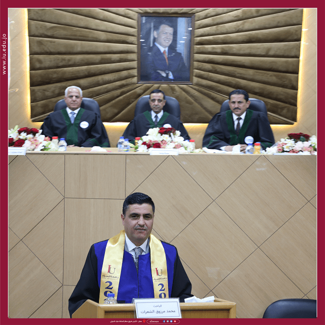 وتكونت لجنة المناقشة من الأستاذ الدكتور أكرم طراد محمد الفايز (رئيساً ومشرفاً) والدكتور محمد الشاهين (مناقشاً داخلياً) والدكتور منير محمد العفيشات (مناقشاً خارجياً) من جامعة الزيتونة .