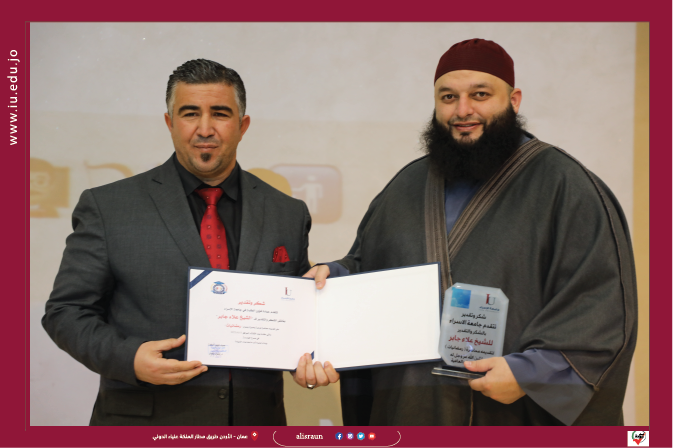 وفي نهاية الفعالية، قدم عميد شؤون الطلبة شهادة ودرع شكر للشيخ علاء جابر.