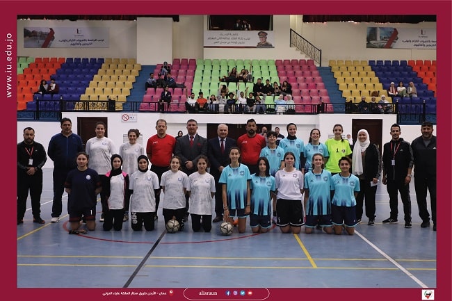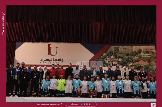 برعاية معالي الأستاذ الدكتور محمد حامد (رئيس جامعة الإسراء) اختتمت اليوم الثلاثاء الموافق (2023/5/9) منافسات بطولة الجامعات الأردنية لكرة القدم صالات (طالبات) والتي نظّمها الاتحاد الرياضي للجامعات الأردنية بالتعاون مع جامعة الإسراء (عمادة شؤون الطلبة – شعبة النشاط الرياضي) خلال الفترة (2023/5/9-2) داخل الصالة الرياضية لجامعة الإسراء وبحضور عمداء الكليات وأعضاء الهيئتين التدريسية والإدارية والطلبة.