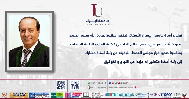 ترقية الدكتور سلامة الدعجة إلى رتبة أستاذ في ” الإسراء” Categories أخبار الجامعة Date January 12, 2023 Share: ccadmin Previous post الأعمال في "الإسراء" تناقش رسالة ماجستير في تخصص إدارة الأعمال January 12, 2023 Next post الهندسة في " الإسراء " تناقش رسالة ماجستير في تخصص إدارة المشاريع الهندسية January 15, 2023 You may also like كلية الصيدلة تنظم زيارة ميدانية إلى مؤسسة الغذاء والدواء ضمن برنامج زيارات التعرض المبكر December 16, 2024 جامعة الإسراء تنظم محاضرة تعريفية حول منح فولبرايت الأمريكية December 15, 2024 زيارة طلبة كلية التمريض في جامعة الإسراء لدائرة المكتبة الوطنية December 15, 2024