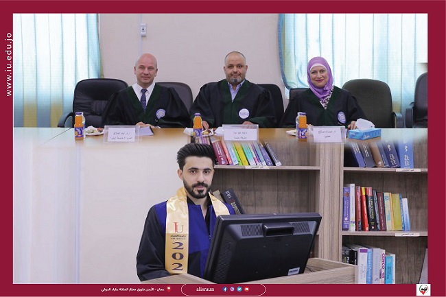 وتكونت لجنة المناقشة من الدكتور زياد أبودية مشرفاً ورئيساً، والدكتور ميساء صالح مناقشاً داخلياً ، والأستاذ الدكتور إياد الملاح مناقشاً خارجياً (جامعة البترا ).