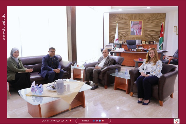 استقبل رئيس الجامعة الأستاذ الدكتور احمد نصيرات الملحق الثقافي الماليزي بالاردن محمد نظام بن وهاب، و بحضور الأستاذ الدكتورة غيداء أبو رمان (مساعد الرئيس للشؤون الدولية ).