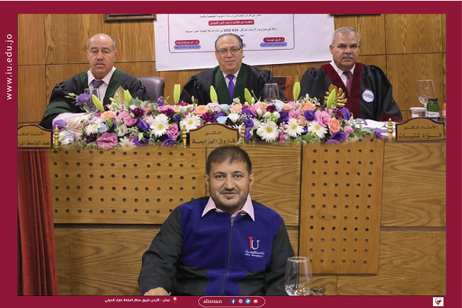 وتكونت لجنة المناقشة من الدكتور فاروق الهزايمة مشرفاً ورئيساً، والأستاذ الدكتور فؤاد شتيات مناقشاً داخلياً، والأستاذ الدكتور عبدالباسط المراشدة مناقشاً خارجياً من “جامعة آل البيت “.