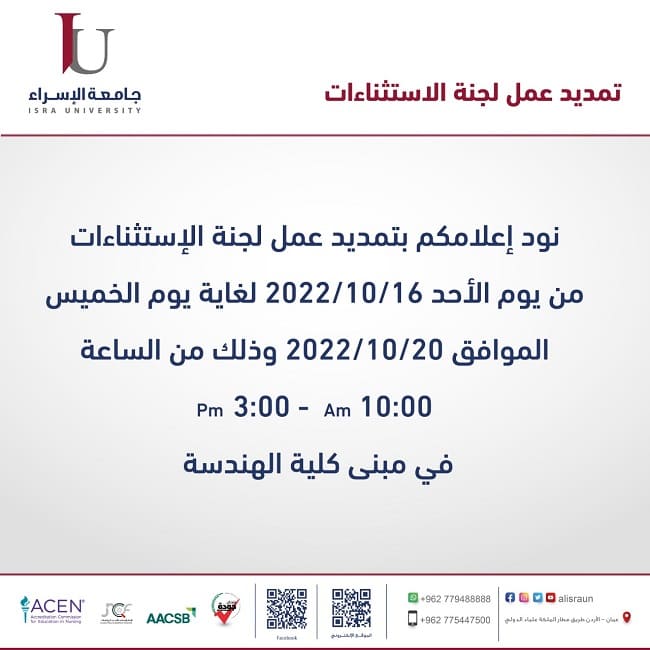 اعلان تمديد لجنة الاستثناءات