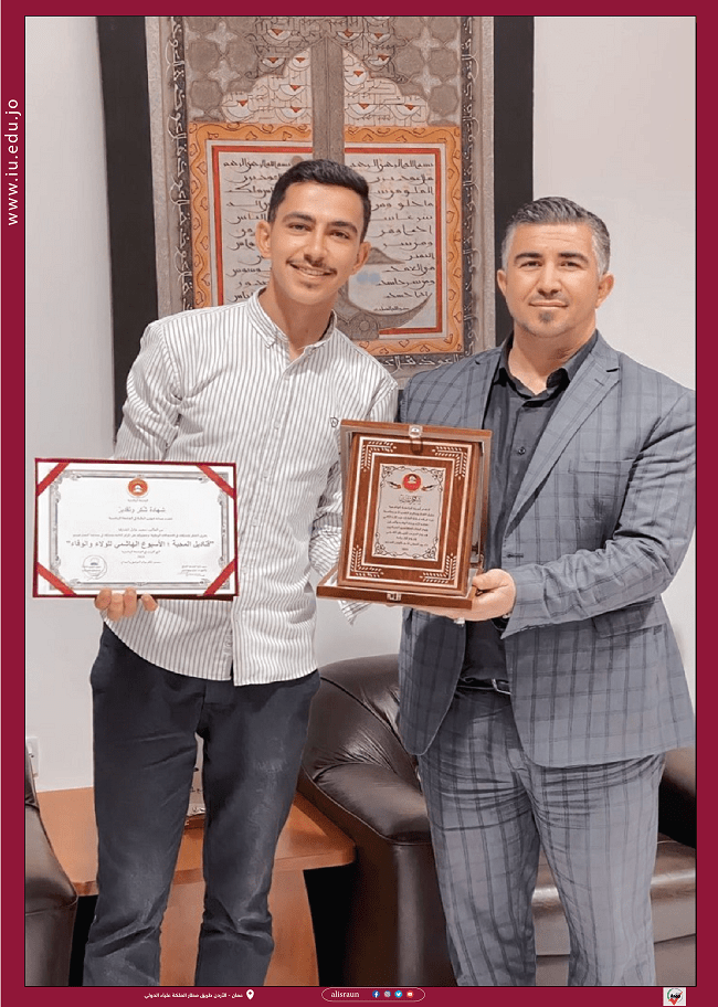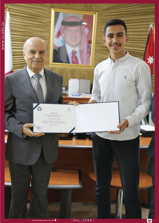 ومن الجدير ذكره أن الأستاذ الدكتور أحمد نصيرات رئيس الجامعة قد كّرم الطالب محمد المشارقة ، مشيراً إلى أن الأنشطة الطلابية لا تقل أهمية عن الجانب الأكاديمي وتعد عاملاً مهماً في بناء شخصية الطالب الجامعي في مختلف المجالات الاجتماعية والرياضية والثقافية وغيرها من المجالات .