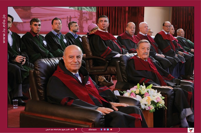 وأضاف بأن هذا الاحتفال يأتي وجاهياً بعد انقطاع بسبب جائحة كورونا التي أثرت على العالم اجمع، وأنّ احتفالنا هذا لمدعاة فخر واعتزاز لوطننا ولجامعتنا التي أصبحت اليوم صرحاً علمياً شامخاً بجهود جميع القائمين عليها، ولم تكن جامعتكم وجامعتنا، جامعة الإسراء، لتبلغ هذا الشأن العظيم الذي بلغته لولا تضافر جهود المئات من أعضاء هيئة التدريس والإداريين الذين قضى كتيرون منهم جلّ حياتهم في خدمة الجامعة وطلبتها، فلهؤلاء أيضاً كل الاحترام والتقدير، وإذا كان عمر جامعتنا تجاوز الثلاثين عاماً،إلا انها مع ذلك لا تزال قياسياً بعمر الجامعات التي مضى على انشائها عقود من الزمن، يدل ذلك على أنّ الجامعة كمؤسسة قادرة دوماً على الارتقاء والتقدم والتجدد والتكيف