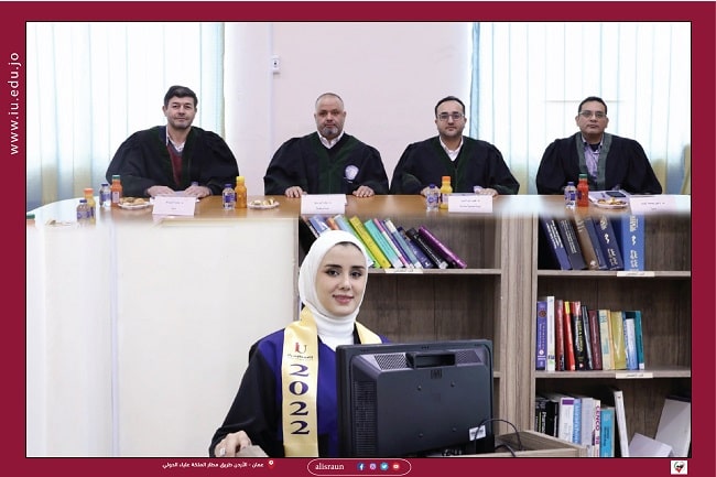 وتكونت لجنة المناقشة من الدكتور زياد أبودية (رئيساً ومشرفاً ) والدكتور قيس أبو العسل ( مشرفاً مشاركاً ) والدكتور رامي أيوب (مناقشاً داخلياً) والدكتور محمد العبادلة (مناقشاً خارجياً ) من جامعة البترا .