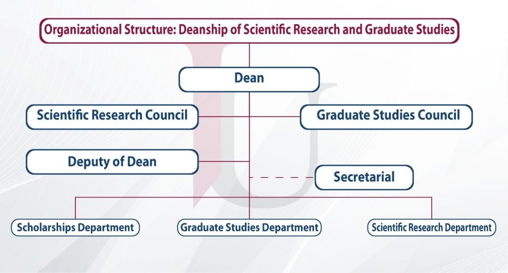 Graduate Studies Scientific Research Scholarship Forms announcements Deanship of Scientific Research and Graduate Studies Organizational Structure About the Deanship Message from the Dean Vision and Mission Organizational Structure Staff directory Researcher Gate User Guide External Funding for Research Projects Regulations of Scientific Research and Graduate Studies Scientific research sites Researcher’s e- library contact us