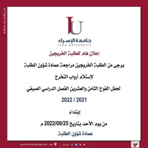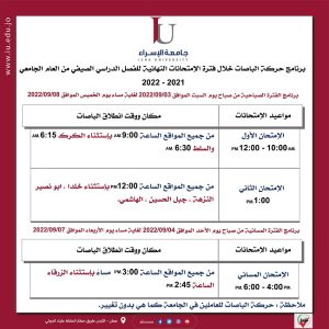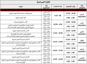 جدول الامتحانات النهائية للفصل الصيفي 2021/2022