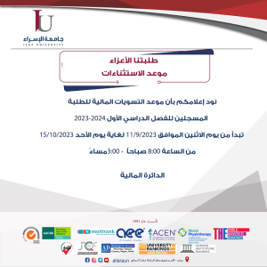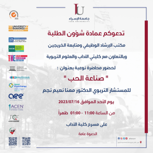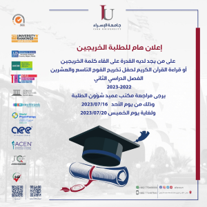 Students Announcements إعلان هام للطلبة الخريجين October 15, 2023 Read More » اعلان هام للطلبة الخريجين October 5, 2023 Read More » اعلان هام للطلبة الخريجين September 18, 2023 Read More » موعد الاستثناءات September 11, 2023 Read More » مسرحية بعنوان بكرا August 15, 2023 Read More » اعلان هام للطلبة الخريجين July 13, 2023 Read More » محاضرة بعنوان ” صناعة الحب “ July 6, 2023 Read More » جدول حركة المواصلات July 3, 2023 Read More » « Previous Page1 … Page4 Page5 Page6 Page7 Page8 … Page32 Next »