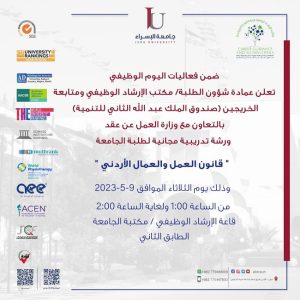 عمادة شؤون الطلبة تنظم ورشة تدريبية مجانية بعنوان “قانون العمل والعمال الأردني”
